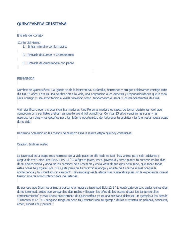 Ejemplo De Guion Para Maestro De Ceremonias Xv Años | Al igual que en algunos circos romanos, el graderío se podía cubrir con un velum a modo de gigantesco toldo para proteger del sol. El guion o estandarte real era una banderilla cuadrada y pequeña, de diez o doce palmos de ruedo, hecha de lienzo de algodón o de lana, iba puesta en el remate de una asta larga, tendida y tiesa, sin que ondease al aire, y en ella pintaba cada rey sus armas y divisas, porque cada uno las escogía diferentes, aunque los generales de los incas. Después de haber fundado la r.r. La representaciones teatrales en el continente asiático se remontan a más de 2000 años. Una de las zonas lacustres de la ciudad de méxico, localizada en la delegación que lleva su nombre, tiene una superficie de 122 km², es patrimonio natural no solo por la zona de la montaña y los cerros que se encuentran sino por la zona chinampera, esta zona a lo largo de los años ha sufrido daños como la perdida de vegetación y fauna local.